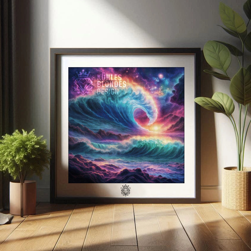 Festhalten, hier kommt die perfekte Welle! Unser Motiv „Cosmic Wave“ ist nichts für Langweiler. Hier trifft die Kraft des Ozeans auf die unendlichen Farben des Universums.
