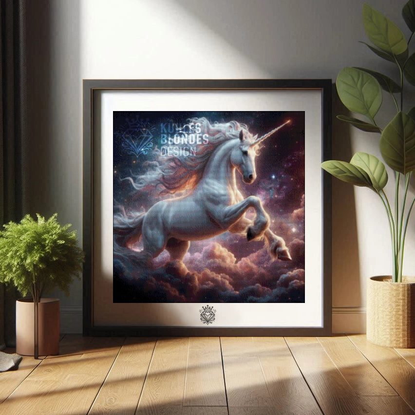 Gibt es etwas Majestätischeres als ein Einhorn? Ja, ein Einhorn, das über einem Meer aus lila Wolken tanzt! Unser Motiv „Das Einhorn auf dem Wolkenmeer“ entführt dich in eine Welt ohne Grenzen.