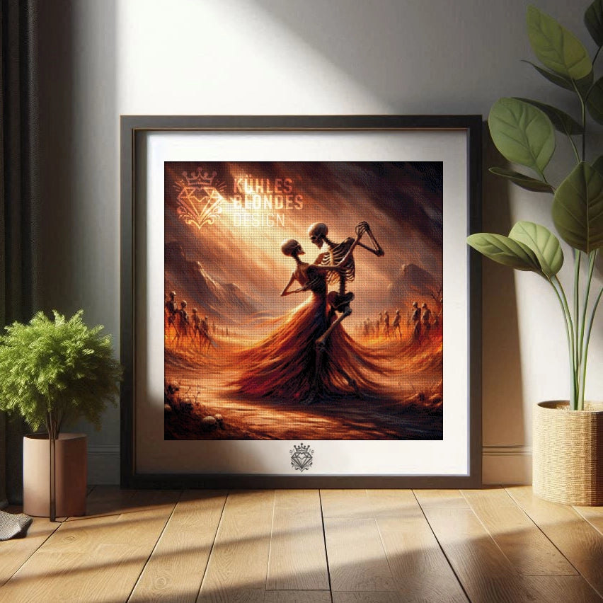 Wahre Leidenschaft kennt kein Ende. Unser Motiv „Tango Mortale“ zeigt, dass die Liebe auch über den Tod hinaus brennt.