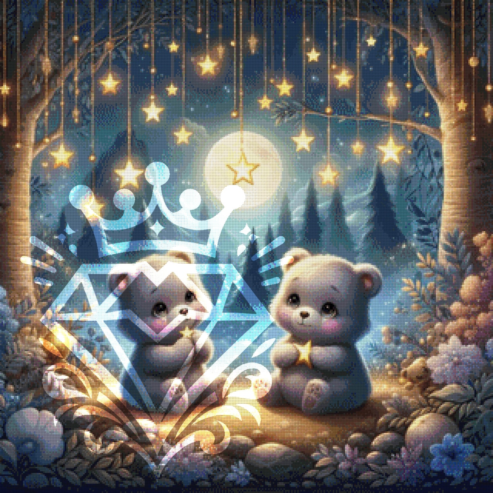 Achtung, Knuddelalarm! Diese zwei zuckersüßen Bärchen haben sich unter dem leuchtenden Sternenhimmel verabredet und halten ihre eigenen kleinen Zaubersterne in den Pfoten. Dieses bezaubernde Diamond Painting Kit fängt die ganze Magie der Nacht ein – von der riesigen leuchtenden Mondsichel bis zu den funkelnden Lichterketten in den Bäumen. Das Steinchen-Setzen ist eine wunderbar entspannende Reise in einen verträumten Märchenwald und das fertige Bild ist die perfekte Dekoration für alle Träumer und Romantiker.