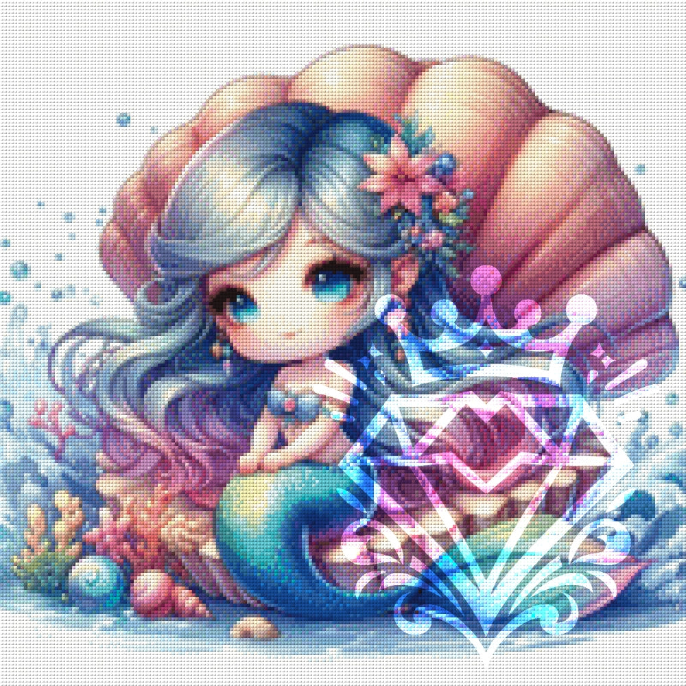 Tauche ab in die Niedlichkeit! Unsere zuckersüße Chibi Meerjungfrau sitzt stolz in ihrer riesigen Muschel und wartet darauf, Dir ein Lächeln zu schenken. Mit ihren funkelnden blau-rosa Haaren, den riesigen Kulleraugen und dem leuchtenden Fischschwanz ist sie der niedlichste Schatz im ganzen Ozean. Das Diamond Painting fängt die sprühenden Wassertropfen und die schimmernden Farben perfekt ein, sodass es beim Basteln garantiert entspannend und glücklichmachend wird. Hol Dir diesen kleinen, aquatischen Liebling jetzt nach Hause und lass Dein Zuhause mit Meeres-Magie funkeln!