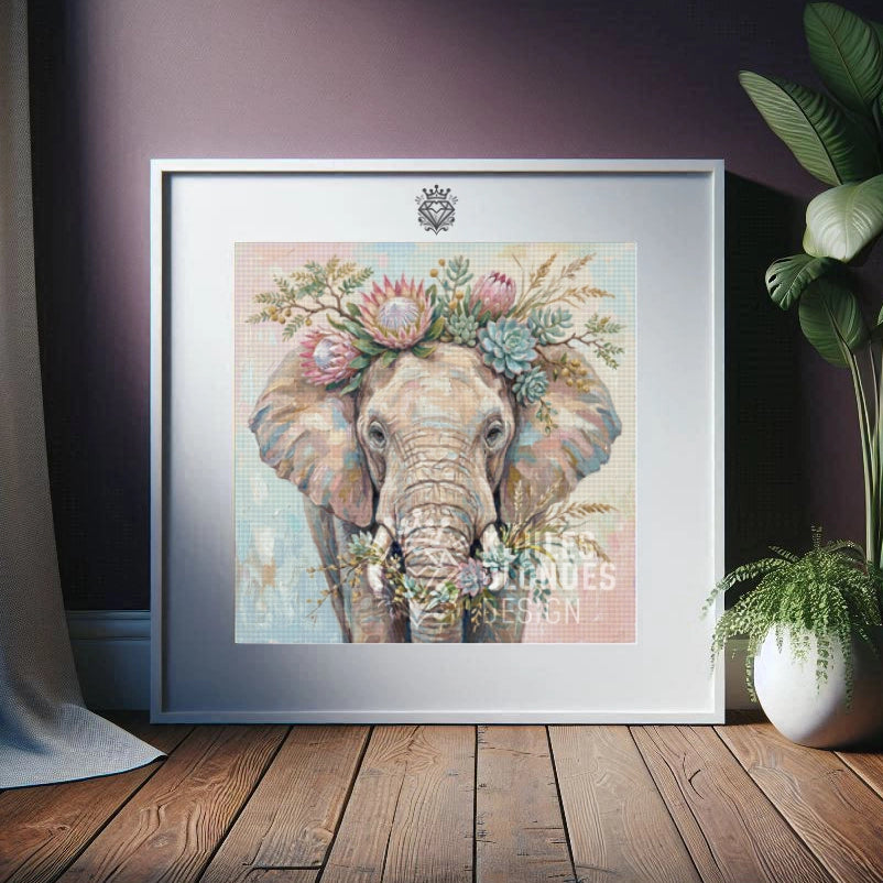 Sie hat sich in Schale geworfen und präsentiert stolz ihren prächtigen Kopfschmuck aus riesigen Proteen und niedlichen Sukkulenten. Der Clou an diesem Diamond Painting: Es sieht aus wie ein gemaltes Kunstwerk in den schönsten Sorbet-Farben. Die pastellige Farbpalette macht einfach sofort gute Laune.
