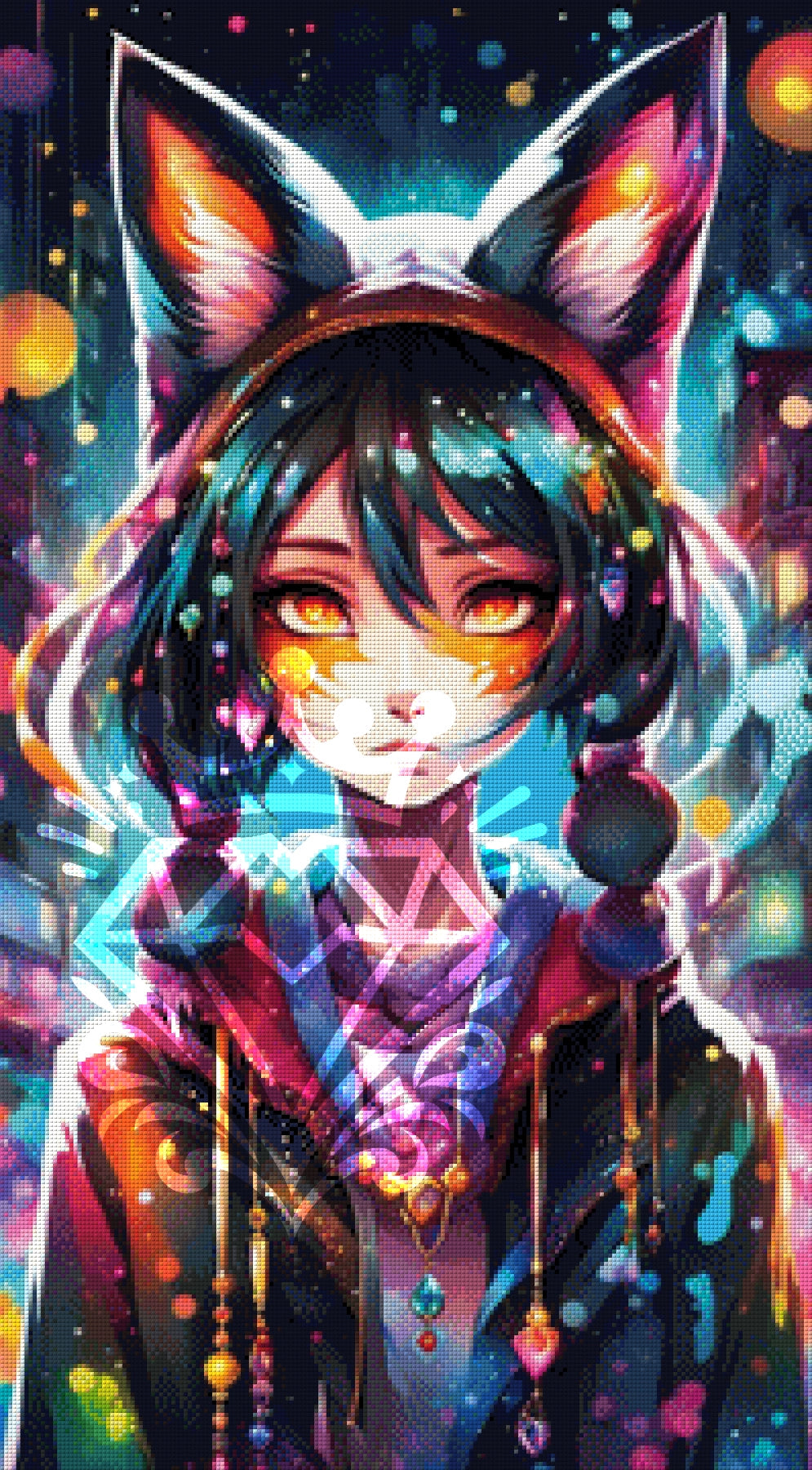 Lass dich von Foxy verzaubern, dem magischen Anime-Mädchen mit leuchtenden, fuchsartigen Augen und einem geheimnisvollen Charme. Ihre bezaubernden Tierohren und der detailverliebte Schmuck fangen die Schönheit und Stärke einer mystischen Heldin ein. Umgeben von den schimmernden Farben der Stadtlichter wird Foxy zu einem atemberaubenden Kunstwerk, das mit jedem Diamanten noch mehr Magie entfaltet.