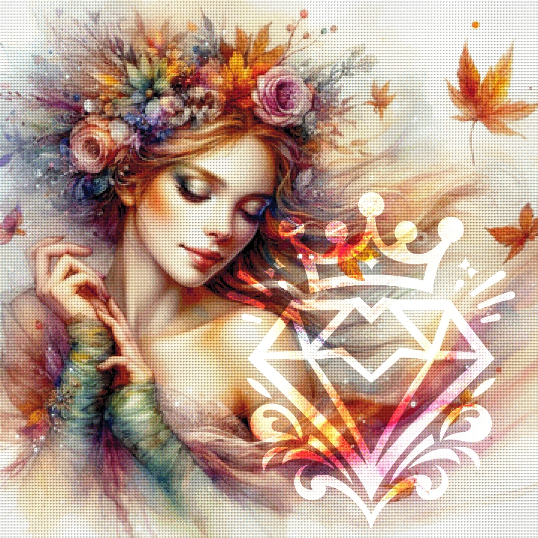 Lass Dich von der zeitlosen Schönheit der Herbstfee in eine Welt der Stille und Farben entführen. Dieses meisterhafte Diamond Painting fängt den sanften Abschied des Sommers ein, indem es die flüchtigen Momente des Herbstes in einem betörenden Porträt vereint. Ihre Mähne, durchwoben von Aquarell-Flüssen in Gold, Rosa und tiefem Orange, verschmilzt mit einem opulenten Blütenkranz aus späten Rosen und gefallenen Blättern. Das Setzen der funkelnden Steinchen auf dieser Leinwand ist ein meditatives Ritual, das die Tiefe und Melancholie der Jahreszeit zelebriert. Erschaffe ein Kunstwerk von zarter Stärke und zeitloser Eleganz, das die Seele berührt und Deine Wände in ein poetisches Licht taucht.