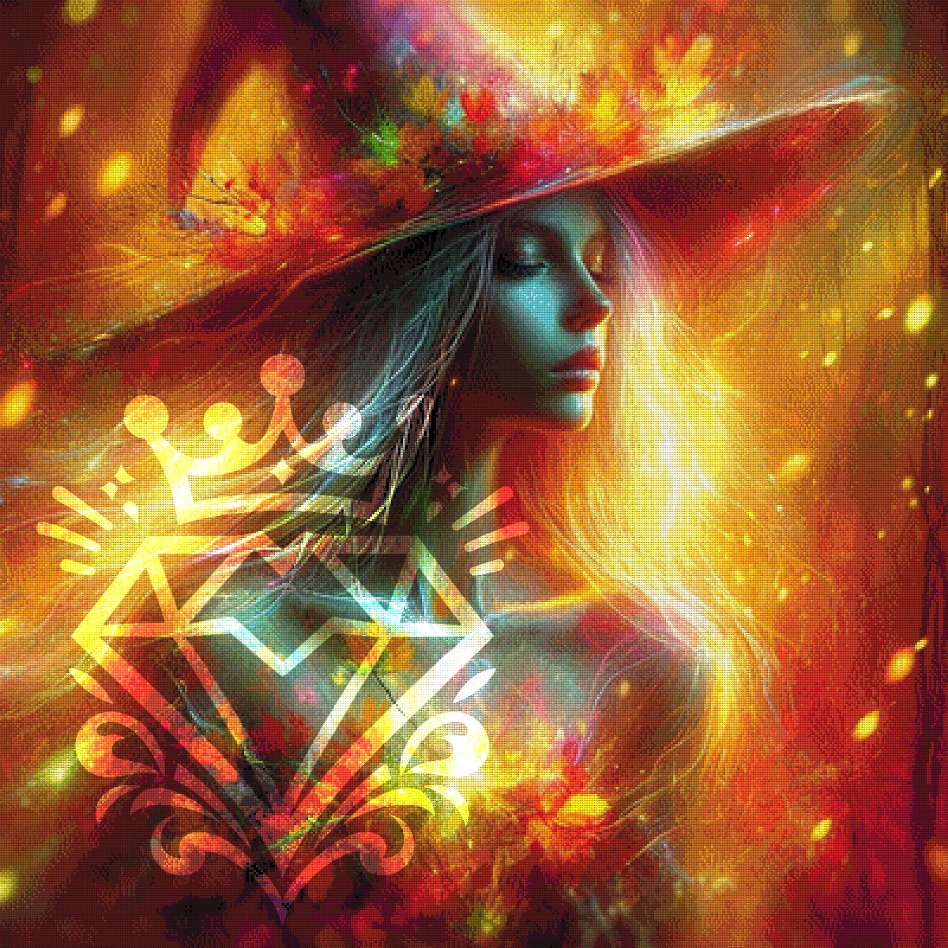 Diese Hexe ist keine Spielerei, sondern die Verkörperung stiller, erwachsener Romantik. Sie steht für die Poesie des Herbstes, eingefangen in einem Moment voller Anmut und geheimnisvoller Schönheit. Mit jedem Stein, den du setzt, erweckst du nicht nur ein Bild zum Leben, sondern schaffst ein Kunstwerk, das die leise Eleganz dieser Jahreszeit zelebriert.