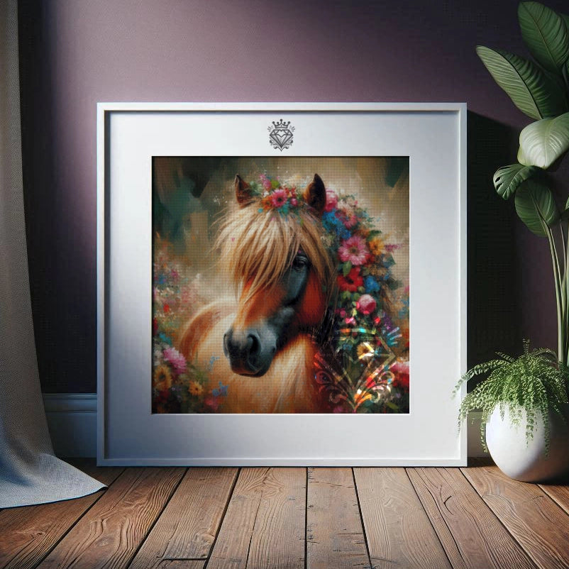 Lassen Sie sich verzaubern vom stolzen Blick von Blumi dem Isländer! Dieses Diamond Painting ist ein wahres Fest für die Augen und feiert die wilde Schönheit der Islandpferde, umhüllt von einem Meer aus leuchtenden Sommerblumen. Es ist ein Kunstwerk voller Lebendigkeit, Farbe und majestätischer Anmut.
