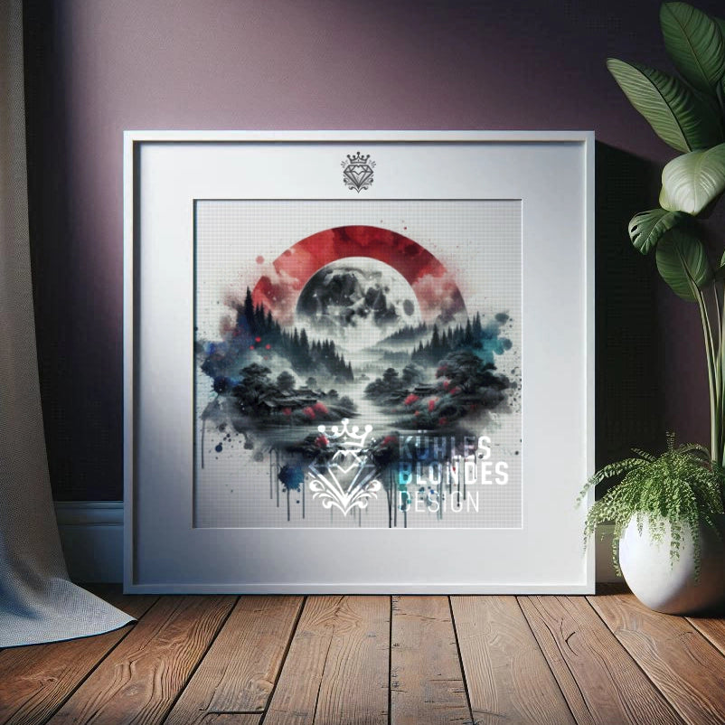 Hier trifft traditionelle asiatische Ästhetik auf modernes Design. Wir lieben den „Dripping-Effekt“ am unteren Rand – es sieht aus, als wäre die Farbe gerade erst getrocknet. Ein Motiv, das Ruhe ausstrahlt, aber durch das leuchtende Rot trotzdem Energie in den Raum bringt.
