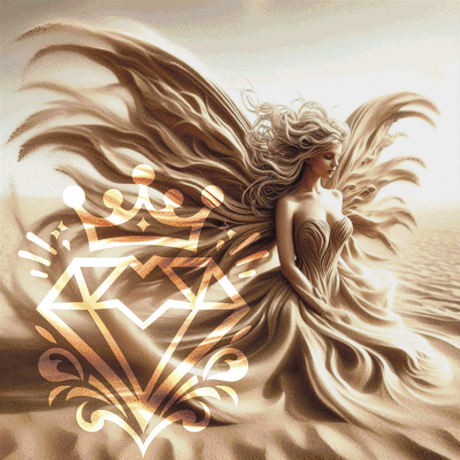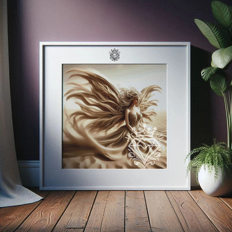 Diese Anmutige Sandfee ist nicht nur ein Fantasy-Wesen, sie ist der Sand selbst, der über die Dünen fegt und eine Spur von glitzernder Schönheit hinterlässt. Ihre Flügel und ihr Kleid bestehen aus weichem Sand, der unter deinen Händen zu purem Glanz wird.